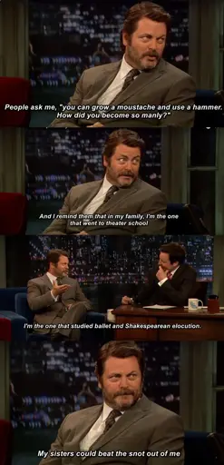 minus-squareExLisperAlinkfedilinkarrow-up2·12 hours agoThat’s why I wrote “is said to be manly” and not “is manly”. People not only don’t realize it’s just a character, they also don’t questions the stereotype.
