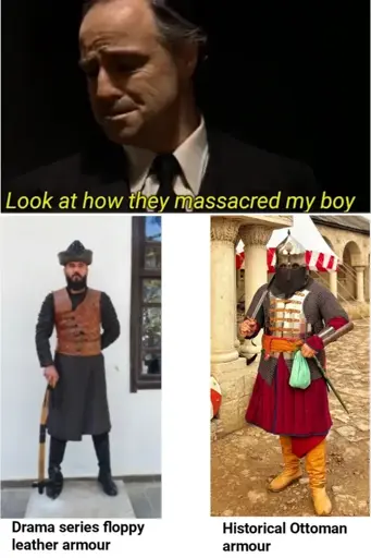 Also, with the costume on the right you wouldn’t be able to see actors face which sucks for movies. Directors also often have to do things the way people expect them to look because other movies convinced them this is how it was. And of course many times they just focus on telling the story they want to tell, not making is as accurate as possible.