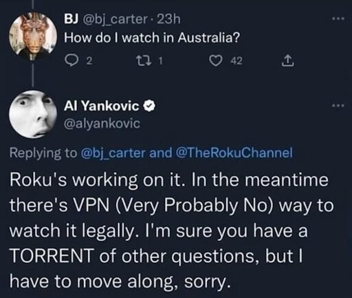 The Picard Maneuver@piefed.world to People Twitter@sh.itjust.worksEnglish · 6 days agoWeird Al's advice to a fanmedia.piefed.worldimagemessage-square22linkfedilinkarrow-up1901 cross-posted to: programmer_humor@programming.dev