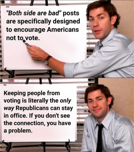 one side is bad. the other side is a comically evil, fucking nightmare that is going to make sure all future generations for the foreseeable future will suffer things that can be avoided by voting for the “bad” side.