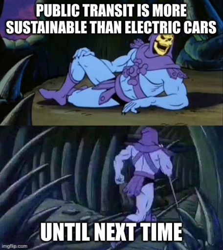 people who argue for public transport argue for better implementation of it (and also city planning that supports it). the idea isn’t for everyone to just stop using cars in favor of public transport even if the public transport system is absolute shit. it’s for systemic support of public transport in such a way that commuters would willingly choose it over being stuck in traffic in their little metal boxes for hours.