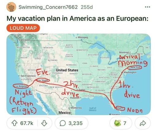 It’d be an indication of intelligence more than being European. I’d NEVER go plan a trip without… Checking the distances between attractions I want to visit?