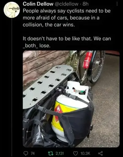 And that maybe we should just add in the proposed bike lanes before cyclists all started carrying hand guns for self defense against reckless drivers.