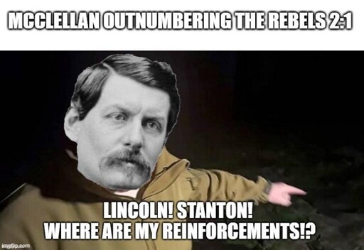 When given command of the Union’s forces against the pro-slavery rebel Confederacy, however, he proved unequal to the task. He had a nasty tendency to overplan and underdeliver, and consistently, grotesquely overestimated the capabilities and numbers of the rebels he faced, snatching defeat from the jaws of victory on several occasions, and blaming his civilian superiors all the while.