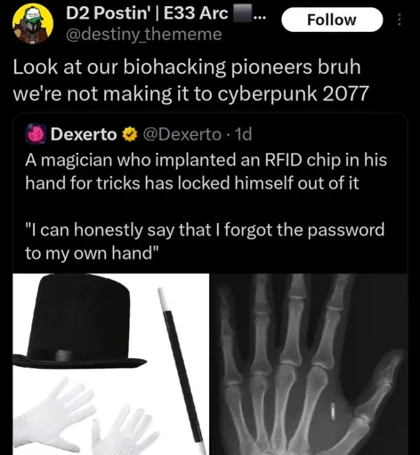 tgirlschierke@lemmy.blahaj.zone to 196@lemmy.blahaj.zoneEnglish · 3 days agoimagine someone hacks this guy's hand. would that be fucked up or what? rule i guesslemmy.blahaj.zoneimagemessage-square8linkfedilinkarrow-up1152