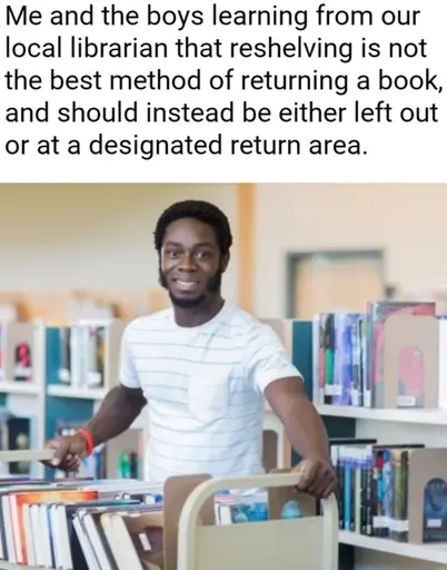 capybeby@sh.itjust.works to Lemmy Shitpost@lemmy.world · 10 days agoLibraries are coolsh.itjust.worksimagemessage-square46linkfedilinkarrow-up1637