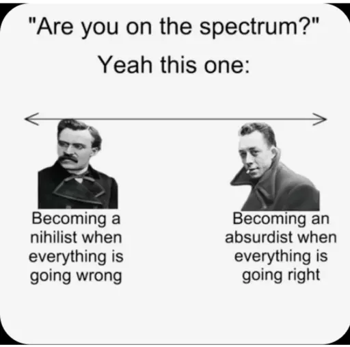 what about those of us who embrace absurdism while things are going poorly and active nihilism when they’re going well?