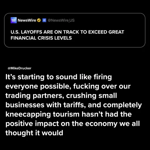 HappySkullsplitter@lemmy.world to Political Memes@lemmy.world · 3 months agoLayoffs Surpass Financial Crisislemmy.worldimagemessage-square32linkfedilinkarrow-up1568