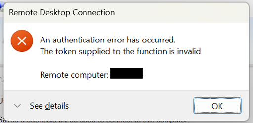 When I try to connect from Windows using Microsoft’s RDP application, I get an invalid token error.