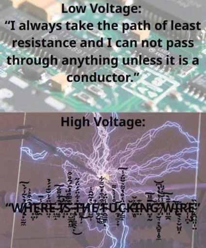 ComradeSharkfucker@lemmy.ml to Science Memes@mander.xyzEnglish · 24 days agoelectricity is honestly eldritchlemmy.mlimagemessage-square15linkfedilinkarrow-up1296file-text