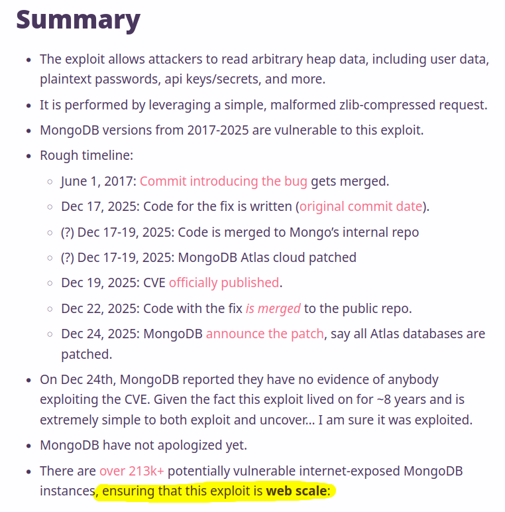 There are over 213k+ potentially vulnerable internet-exposed MongoDB instances, ensuring that this exploit is web scale.
