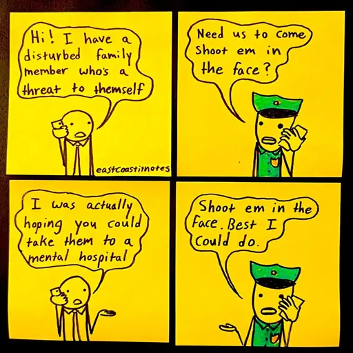 If it is an emergency, the yeah you have to call, and yeah they’ll probably send cops with the ambulance, and yeah the cops like doing that sometimes. But maybe you’ll get lucky, most of the time nothing bad happens and so it doesn’t become a national story and a point in your confirmation bias folder, so it’ll probably still be fine. Probably still better to seek option one though…