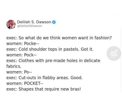 What if I told you that women’s clothing is form-fitting with small pockets because that’s what is popular among women?