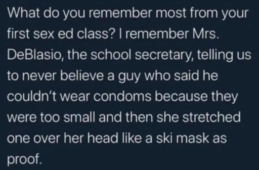 Our health ed teacher said vaginas are only 4 inches deep and a student asked how porn actresses take much bigger dicks than that.