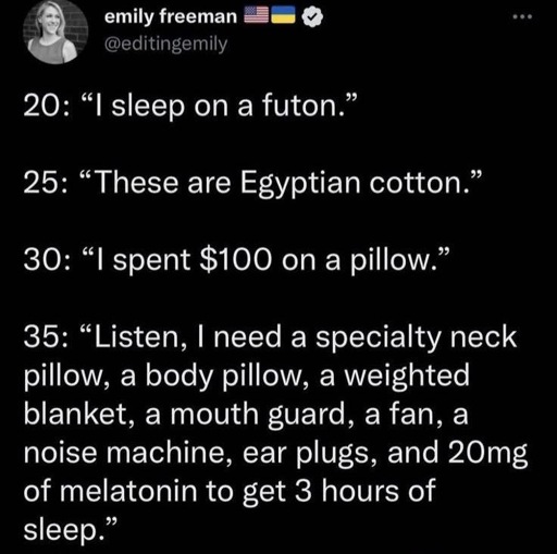 Can confirm. I need 14 hours in bed to get 6 hours of sleep.