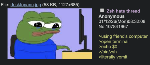 minus-squareRoyaltyInTraining@lemmy.worldlinkfedilinkarrow-up2·13 days agoFish was kinda cool when I tried it, but I don’t really care about the benefits that much. I love Zsh’s effortless customization with Oh My Zsh and the POSIX compatibility.