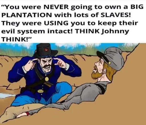 Ironically enough, even most of the plantation “owners” didn’t really own their plantations or slaves. They were typically massively in debt, usually to English bankers who were financing the loathsome operation to provide cheap raw material for their cotton factories. This is why the British government – which had led the way in banning slavery in the British empire and using its navy to interdict the transatlantic slave trade – was somehow on the side of the Confederacy during the Civil War.