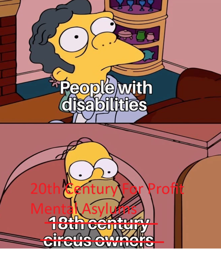 How does one profit of of the mentally disabled? Aren’t for profit prisons essentially using slave labour (or nearly) to generate profit? Seems like the mentally disabled wouldn’t be the best labour force to employ.