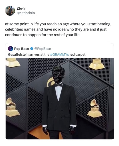 minus-squarevenusaur@lemmy.worldlinkfedilinkarrow-up28·edit-214 days agoHe’s been around for a while now so they must be pretty old or weren’t into the dance music craze of the 2010’s