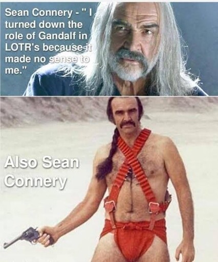 Jesus can you actually imagine if LOTR had Sean Connery instead of Ian McKellen? Hideous prospect. No shade to Connery, he’s played some of my favourite characters over the years, but christ that would have been a terrible mistake.