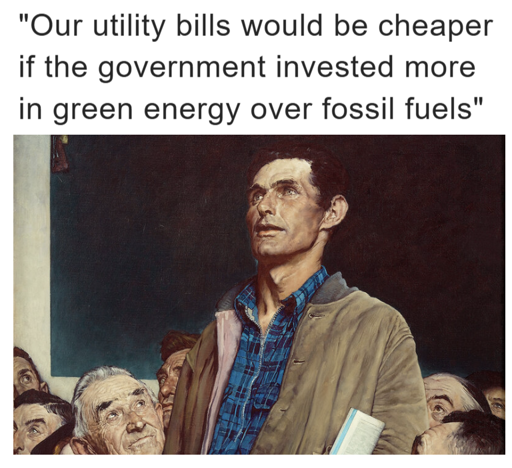 If you want things to be cheap, you pit fossil fuel against green energy in real competition. Then they are both forced to get as cheap as possible at every layer of their supply chains if they want their respective supply chains to continue. That’s what kills profit and greed because they have to give up short-term greed for a shot at long-term survival. When you give either or both a government crutch, the executives involved try to reap as much cash out of that crutch now while the crutch exists.