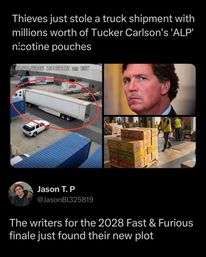Tucker Carlson sells nicotine pouches? Lol grifting fuck.