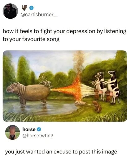 #Km91#@sh.itjust.works to Funny@sh.itjust.works · edit-27 days agoWise horsesh.itjust.worksimagemessage-square22linkfedilinkarrow-up1740file-textcross-posted to: lemmyshitpost@lemmy.world