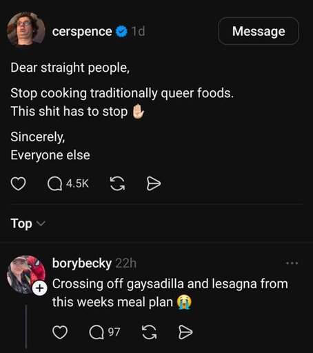 Iheartcheese@lemmy.world to Lemmy Shitpost@lemmy.world · 8 days agoGaysadillalemmy.worldimagemessage-square172linkfedilinkarrow-up1970
