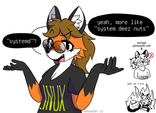 BomberMan9865@sh.itjust.works to linuxmemes@lemmy.world · 1 year agoXenia doesn't like Systemddiscuss.tchncs.deimagemessage-square0linkfedilinkarrow-up11