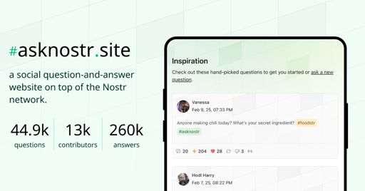 Technology@piefed.social•asknostr.site - Questions show up across multiple nostr apps. Questions and answers can't be fully removed, people can't be permanently banned.English